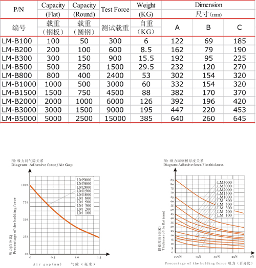 "NEMI" Lifting magnet - Capacity Chart |